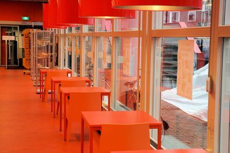 De bibliotheek van Leerdam werd in 2006 volledig gerenoveerd. Ruim3 Interieurarchitecten slaagden er in een prachtig, kleurrijk, functioneel ontwerp te maken. De keuze voor knalrode en oranje meubels maakten er een vrolijk interieur van.